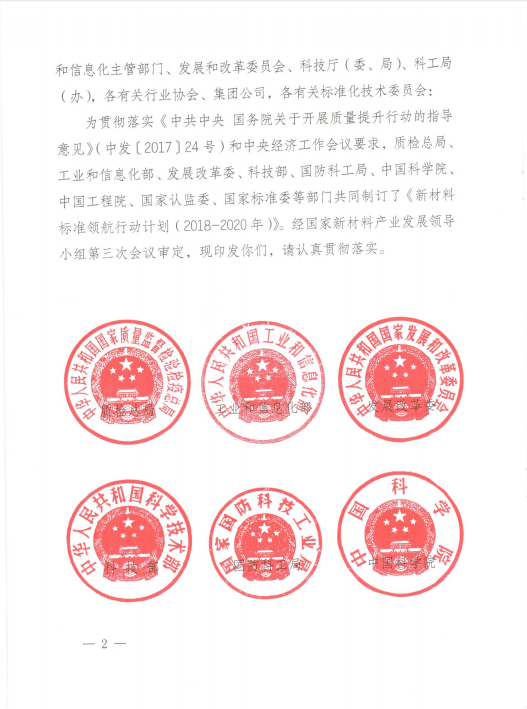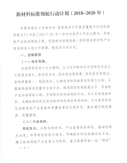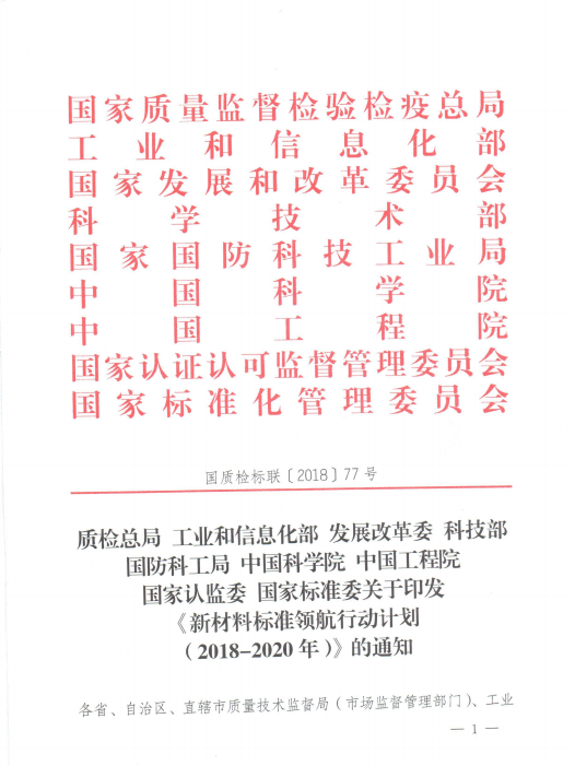 九部委联合印发《新材料标准领航行动计划(2018-2020年)》