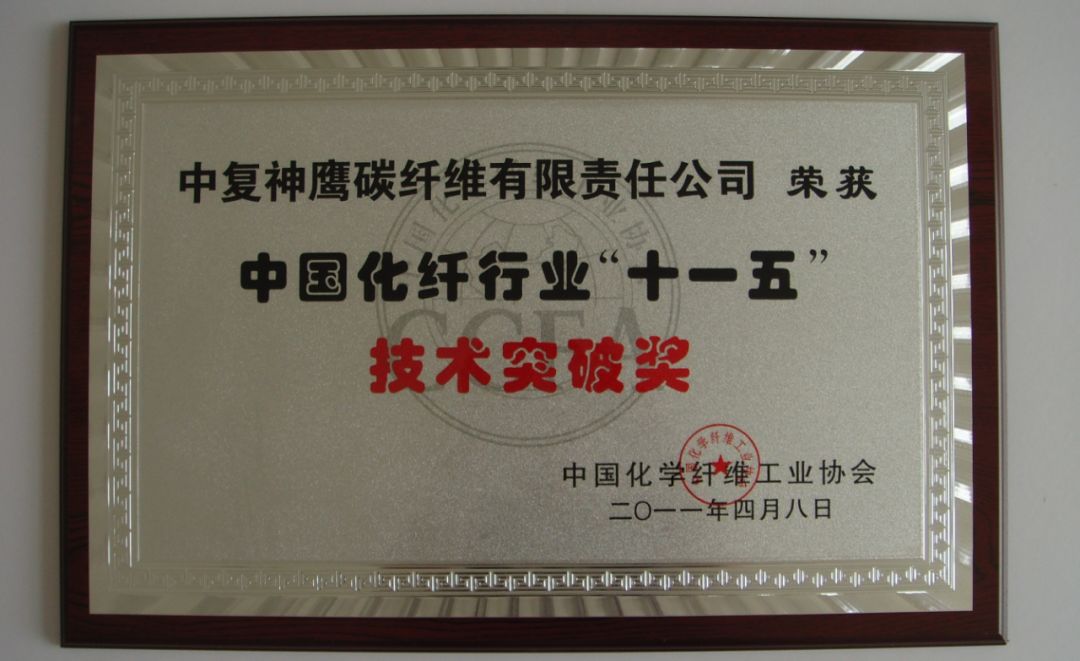 千吨T300碳纤维项目荣获纺织工业联合会科技进步一等奖,成为国内率先实现碳纤维产销量过千吨的企业,产品占国产碳纤维市场的70%以上。